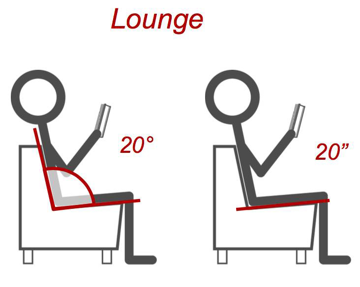休息型的(de)椅子(zǐ)必須遵循20/20法則,指的(de)是座位有20度傾斜、20英寸深(50厘米)。當然,不是每個休息型的(de)椅子(zǐ)都遵循這一(yī)法則,我們需要知道(dào)的(de)是椅子(zǐ)背比正常的(de)椅子(zǐ)要更加傾斜,座位也要更深一(yī)些。
