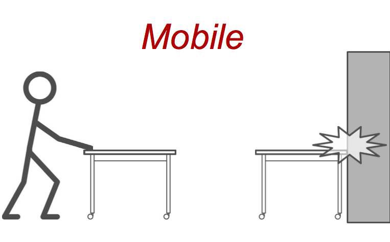 第三個是移動性測試。一(yī)般人往往會聯系到靈活性。 靈活性指的(de)是可(kě)以以最小的(de)努力定期改變、重新組合或改為(wèi)他用, 而移動性指的(de)是該物品能在任何時間、任何地(dì)點被任何人移動。如(rú)果你想要的(de)是移動性,需要考慮如(rú)何使産品對空間和(hé)自(zì)身的(de)破壞減少到最小。例如(rú),我們不建議給移動的(de)桌子(zǐ)配備木頭材質的(de)邊角。我們也不建議打開休息室椅子(zǐ)輪子(zǐ)上的(de)鎖扣,因為(wèi)讀者會忘記打開鎖扣,損壞椅子(zǐ)。我們建議将移動性家具放在開放、沒有碰撞危險的(de)區域。最後,我建議移動性家具帶有一(yī)些組件,可(kě)以輕易更換,當壞了的(de)時候可(kě)以不用更換整個家具。