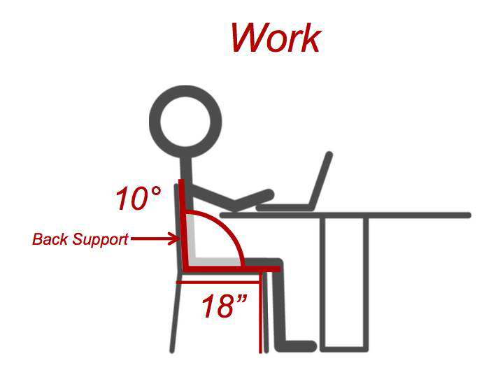 工作型的(de)椅子(zǐ)遵循10/18/18法則,指的(de)是背部有10度的(de)傾斜,座位的(de)高(gāo)度和(hé)深度均為(wèi)18英寸(46厘米)。和(hé)休息型的(de)椅子(zǐ)相比,背部要相對直一(yī)些。