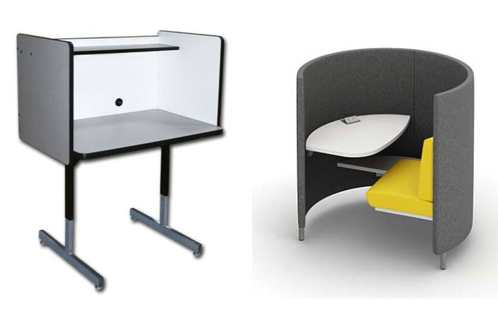 再看看這兩個産品。兩個都有工作台可(kě)以使用,也可(kě)以給人隐私感,但右邊的(de)明顯感覺更舒适、更值得擁有、更具安全感,讓你集中精力工作學(xué)習。