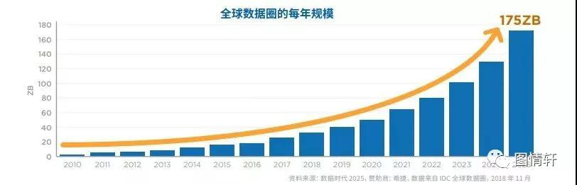 據IDC發布《數據時代2025》的(de)報告顯示,全球每年(nián)産生的(de)數據将從2018年(nián)的(de)33ZB增長(cháng)到175ZB,相當于每天産生491EB的(de)數據。
