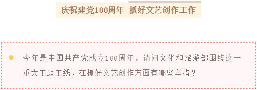 今年(nián)是中國共産黨成立100周年(nián),也是“十四五”的(de)開局之年(nián)。文化和(hé)旅遊部在推動文化和(hé)旅遊改革發展方面有哪些重點任務和(hé)主要考慮?圍繞建黨百年(nián),文藝創作方面有哪些舉措?在黨史學(xué)習教育方面,如(rú)何利用好紅(hóng)色旅遊和(hé)革命文物講好黨史故事?如(rú)何通過發展鄉村旅遊,鞏固脫貧攻堅成果同鄉村振興有效銜接?在公共文化服務、考古和(hé)曆史文化遺産保護、旅遊業恢複發展等方面,有哪些進展情況,下一(yī)步工作如(rú)何安排……