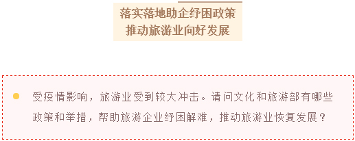 胡和(hé)平:旅遊業是典型的(de)生活性服務業,旅遊活動聚集性、流動性很強,在新冠肺炎疫情中受到嚴重沖擊。在黨中央、國務院堅強領導下,文化和(hé)旅遊系統做(zuò)了很多努力,推出一(yī)系列針對性政策舉措,幫助行業和(hé)企業渡過難關、複工複産複業,取得了良好效果,旅遊業恢複呈現積極向好态勢。