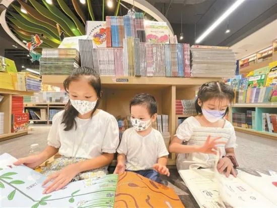 ▲深圳書城中心城“年(nián)度十大童書”百本主題展前,孩子(zǐ)們席地(dì)而坐,享受閱讀時光。