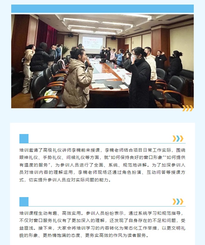 服務于“心”,“儀”禮待之——2023年(nián)下半年(nián)度成都圖書館項目部服務禮儀培訓